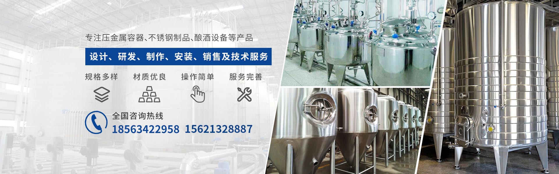 白酒釀酒設備  ·  啤酒釀酒設備   ·  葡萄酒、果酒釀酒設備   ·  果汁飲料設備  ·  生物化工設備   ·  乳品制藥設備   ·  管道工藝工程  ·  鍋爐、環保設備   ·  產品及配件